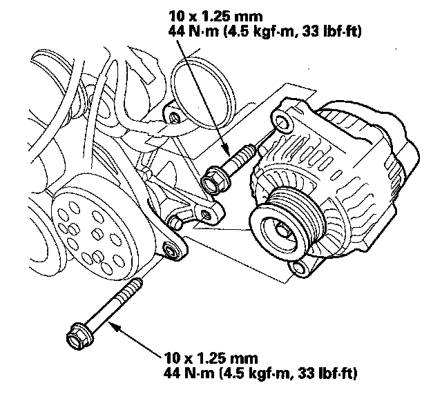 8. Disconnect the 4P connector (A) from the alternator (B), and disconnect the BLK wire from the alternator B terminal (C).