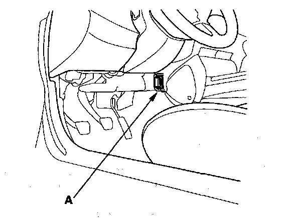 1. With the ignition switch in LOCK (0), connect the HDS to the data link connector (DLC) (A) located under the driver's side of the dashboard.