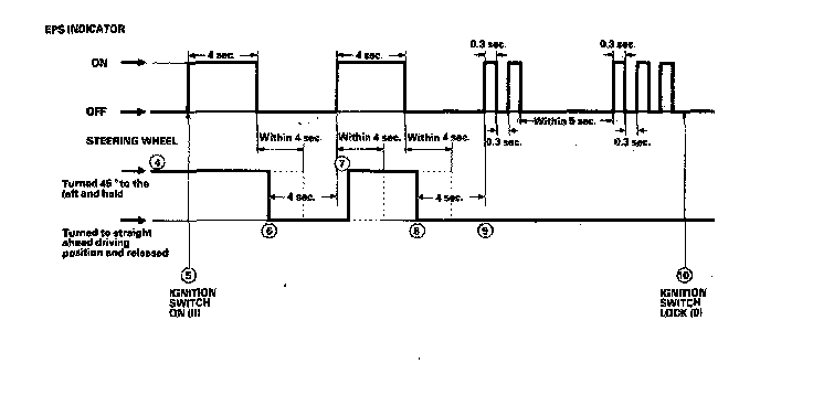 10. Within 4 seconds after the EPS indicator comes on, turn the steering wheel 45 degrees to the left again and hold it in that position. The EPS indicator goes off after 4 seconds.