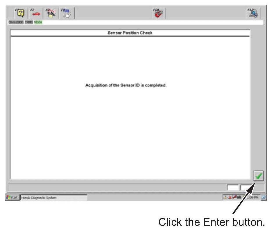 22. The sensor ID learning procedure is complete. Select the Enter button to continue to register the TPMS sensor IDs in the TPMS unit.