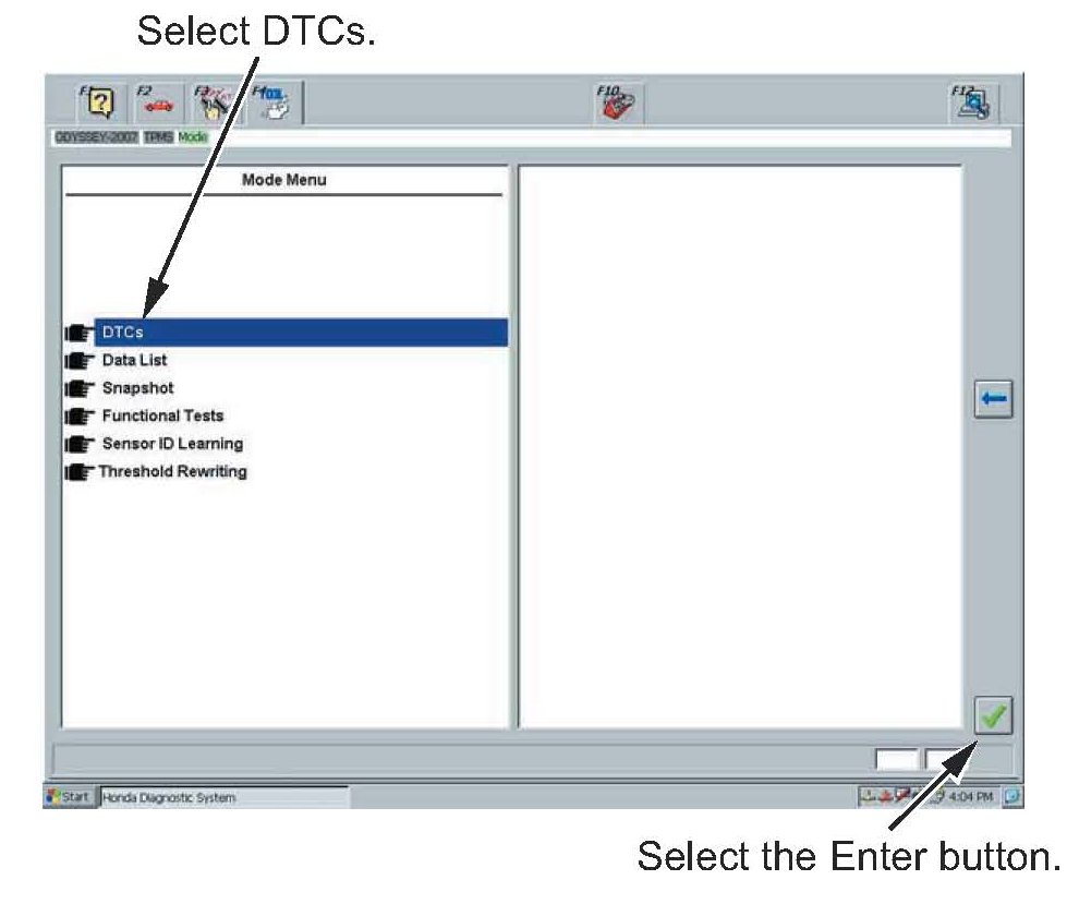 26. Return to the Mode Menu, select DTCs, then select the Enter button.