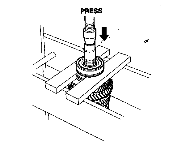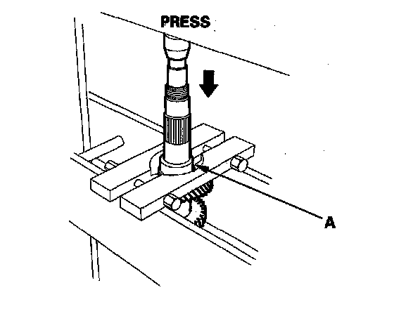 2. Remove the inner race (A) using a commercially available bearing separator and a press as shown.