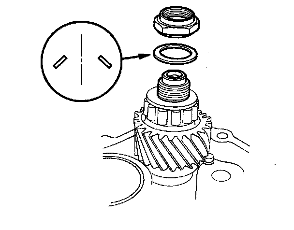 6. Raise the 27 mm locknut tab from the groove in the secondary shaft.