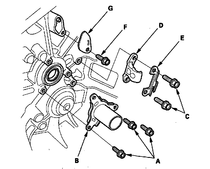 27. Remove the 6 mm flange bolt (F) and the breather plate (G).