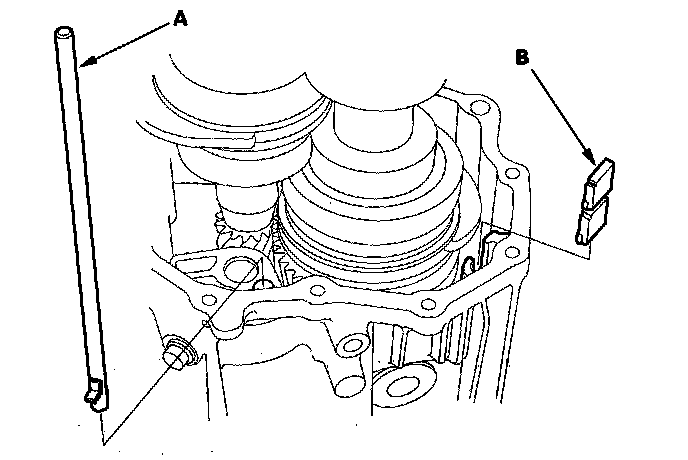 13. Install the oil guide pipe (A) and the magnet (B).