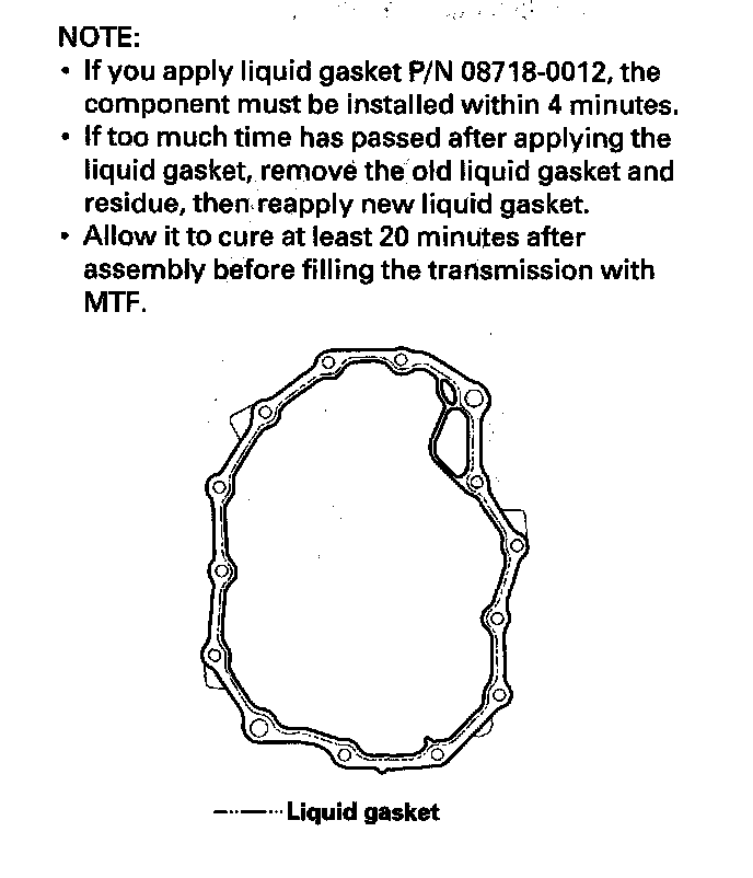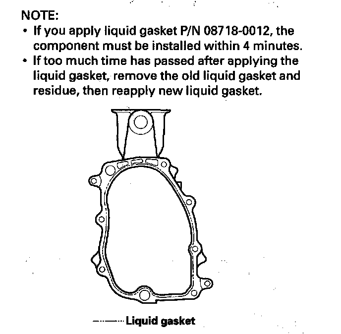 ^ If you apply liquid gasket P/N 08718-0012, the component must be installed within 4 minutes.