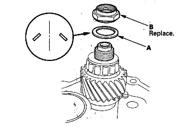 3. Install the thrust washer (A) and the 64 mm spring washer (B).