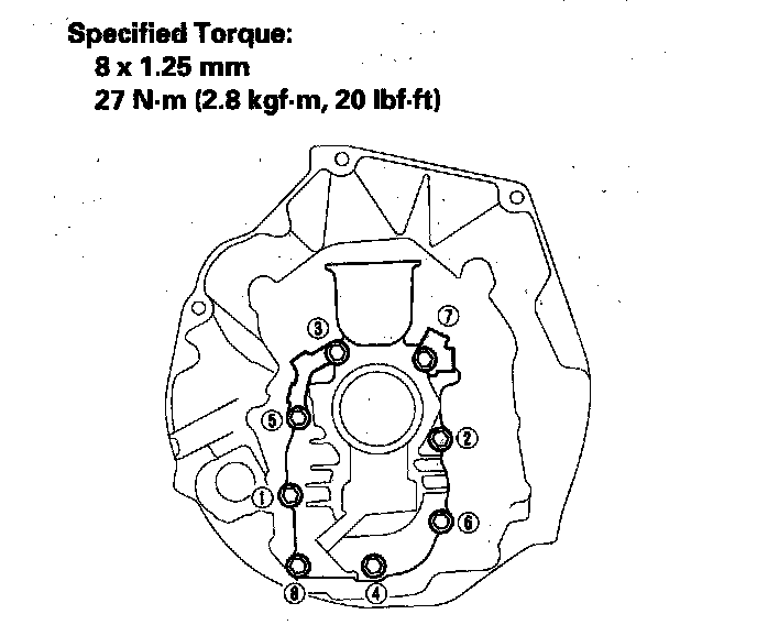 20. Tighten the 8 mm flange bolts in a crisscross pattern in several steps as shown.