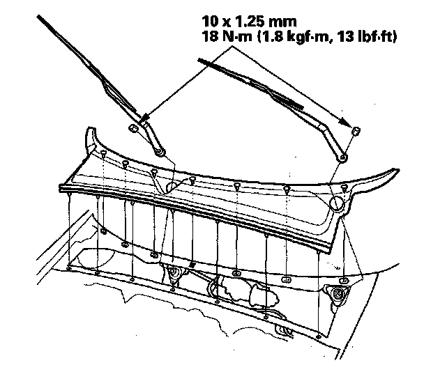 Wiper Motor Replacement1. Open the hood, and remove the cap nuts and the wiper arms.