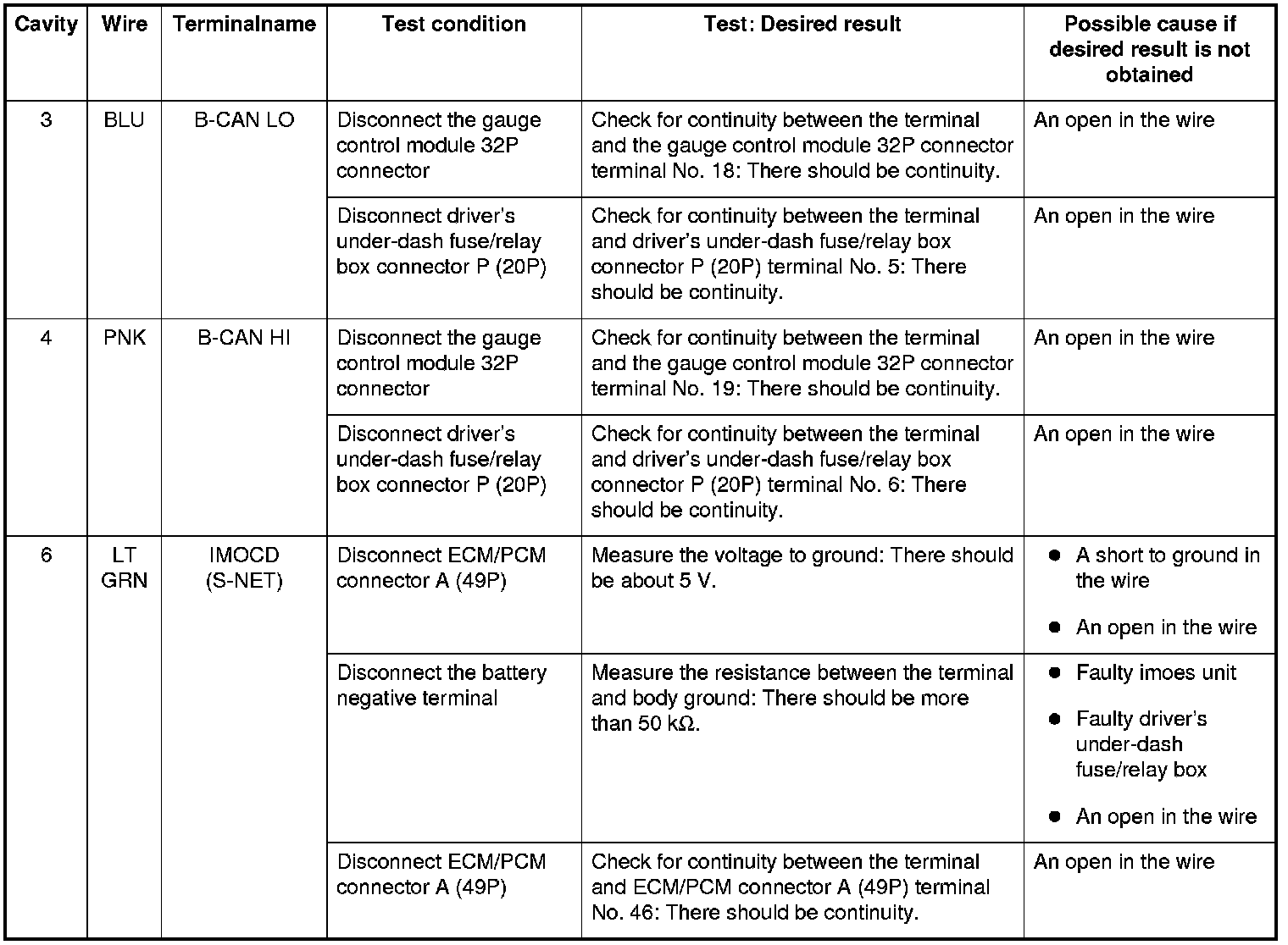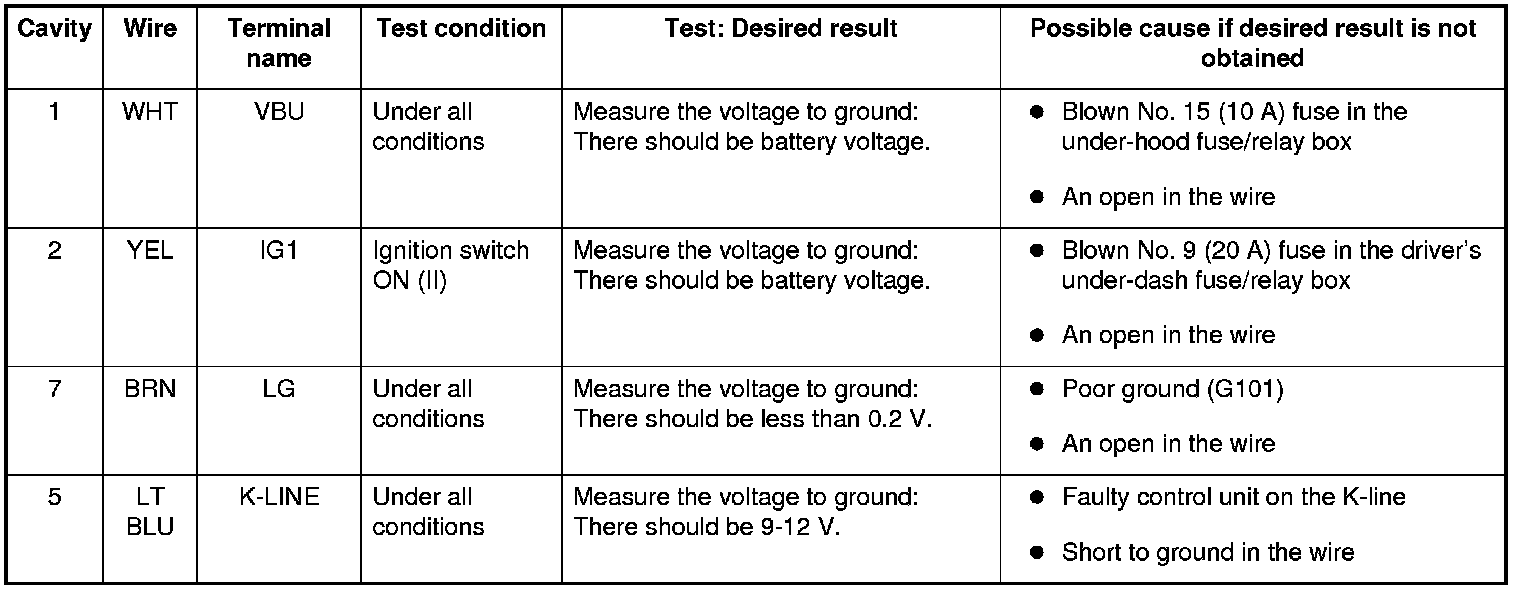 NOTE: Before testing, troubleshoot the multiplex integrated control unit first, using B-CAN System Diagnosis Test Mode A. Troubleshooting - B-CAN System Diagnosis Test Mode A