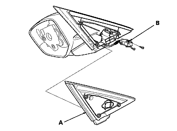 8. Remove the three screws, and separate the mirror housing (B) from the bracket (C).