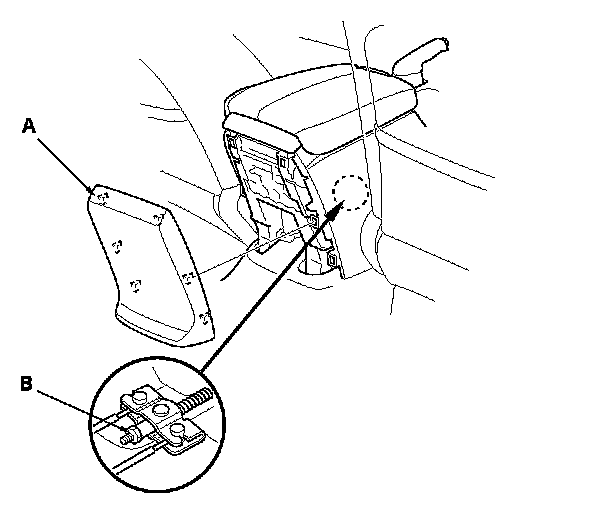 2. Pull out the center console rear trim (A). Center Console Rear Trim Removal/Installation