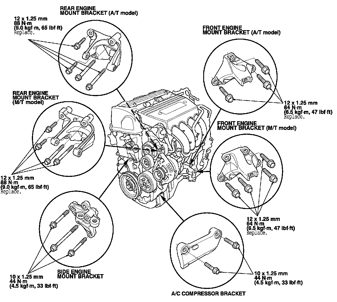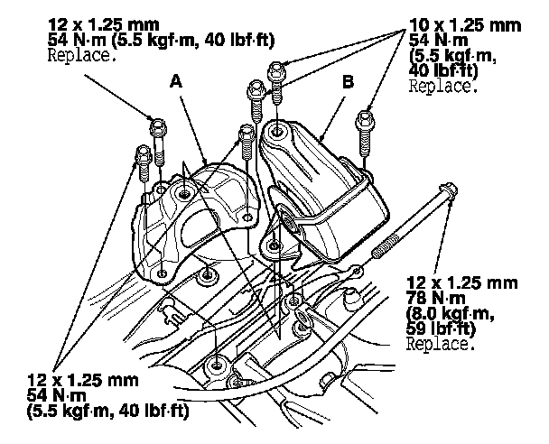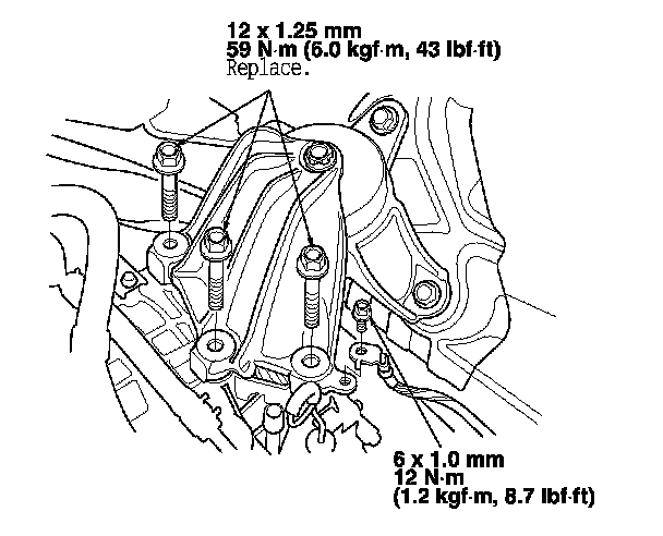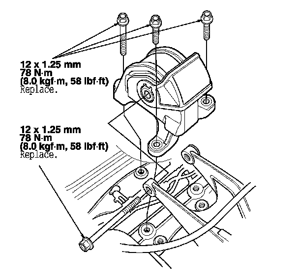 NOTE: Reinstall the mounting bolts and support nuts in the sequence given in the following steps. Failure to follow this sequence may cause excessive noise and vibration, and reduce engine mount life.