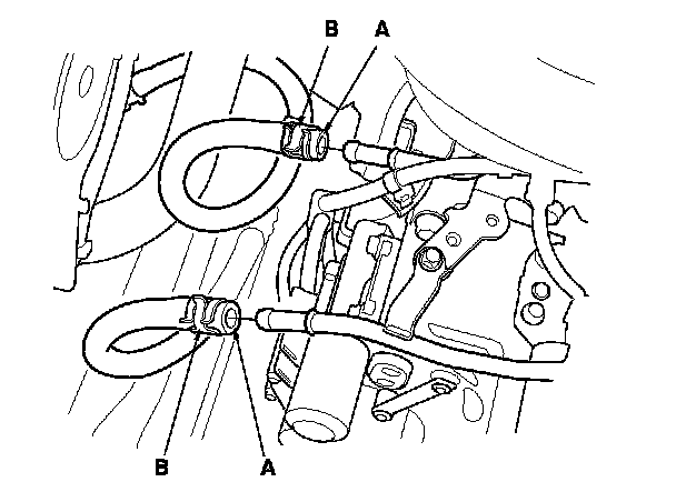 36. A/T model: Connect the ATF cooler hoses (A), and secure the hoses with the clips (B). Service and Repair