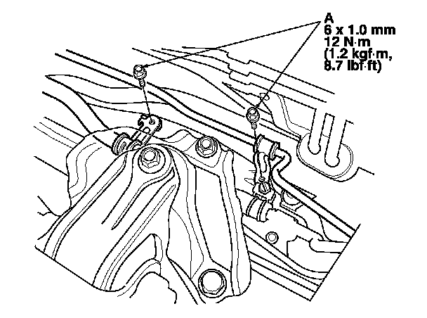 38. Install the two bolts (A) securing the power steering (P/S) fluid line brackets.
