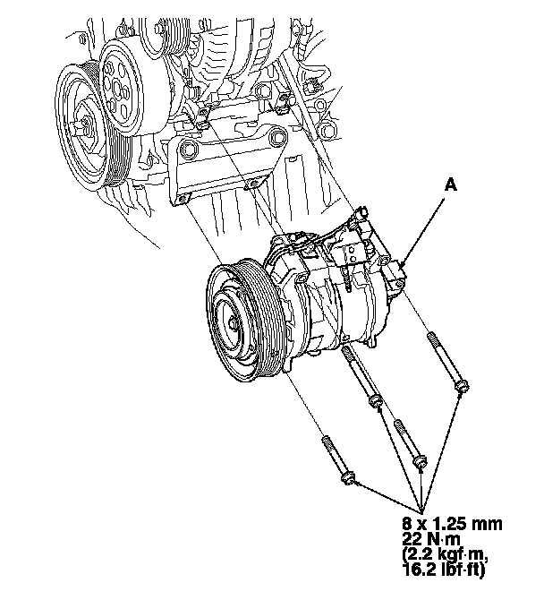 7. Install the A/C compressor in the reverse order of removal, and note these items: