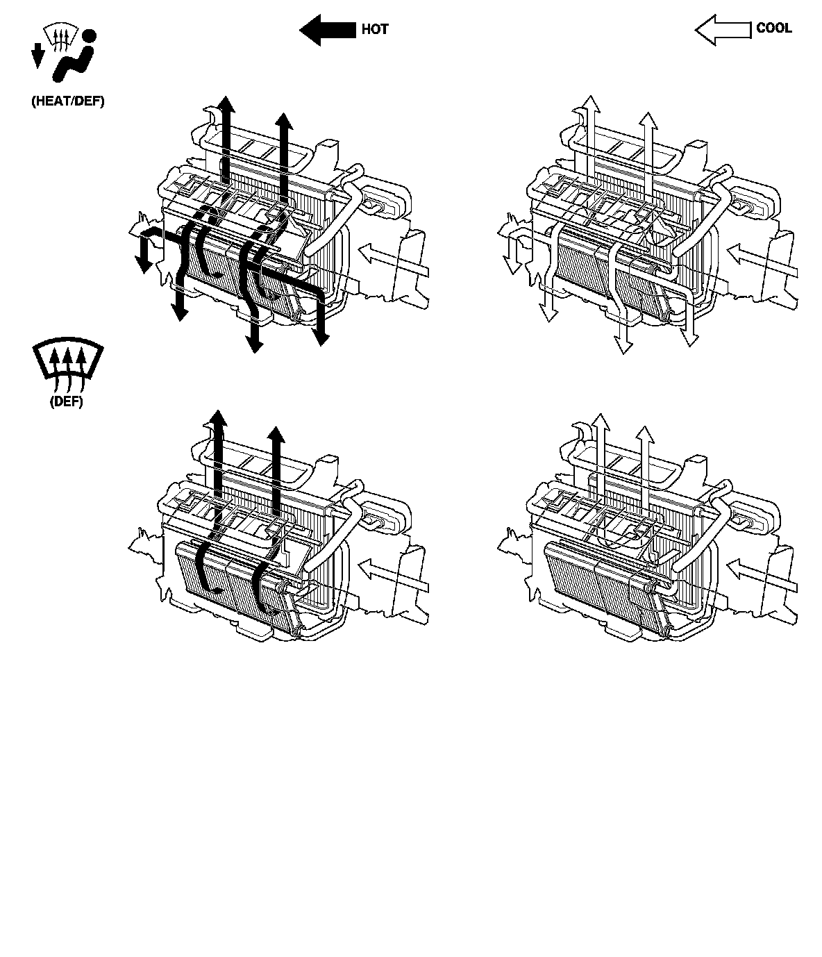 In the event that the navigation system malfunctions, or when driving in areas where the navigation cannot determine the vehicle position (non-coverage areas, tunnels, etc.), the climate control system will operate the same as a vehicle without navigation.