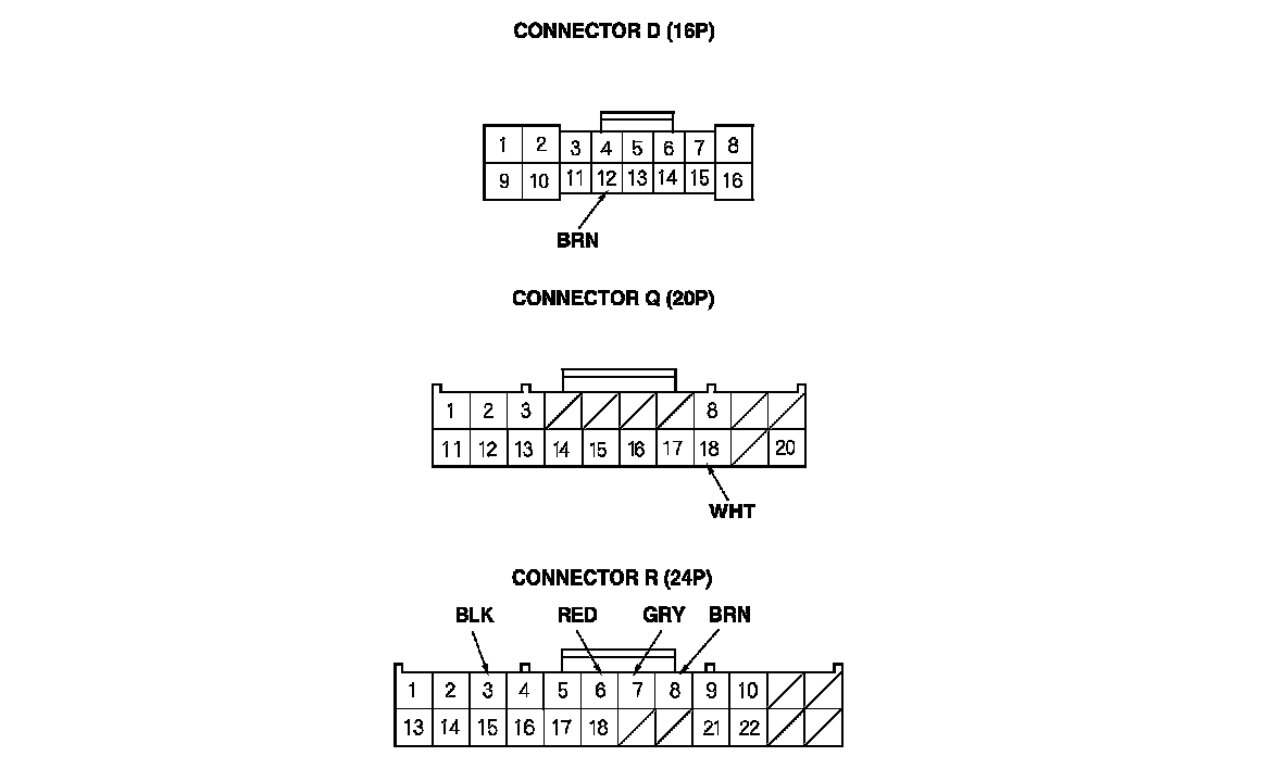 2. Disconnect driver's under-dash fuse/relay box connectors D, Q, and R.
