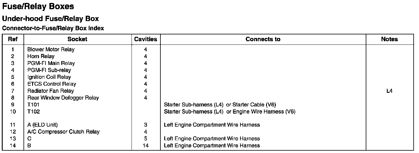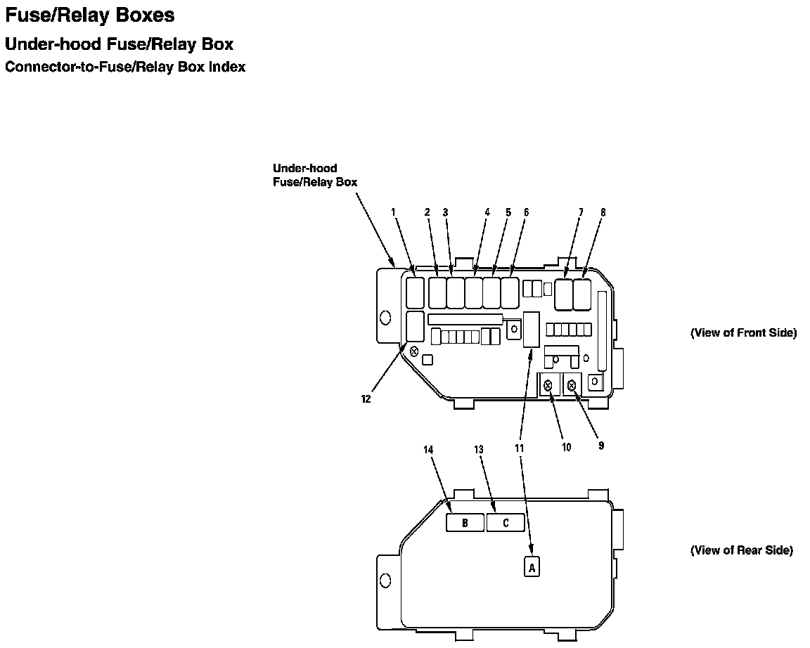 Under-Hood Fuse/Relay Box - Connector-to-Fuse/Relay Box Index
