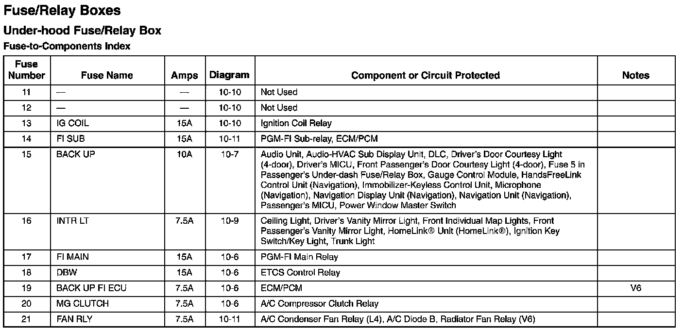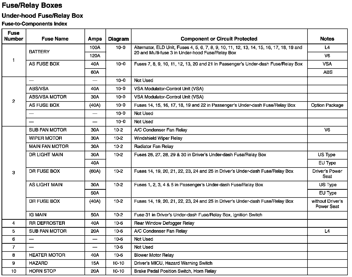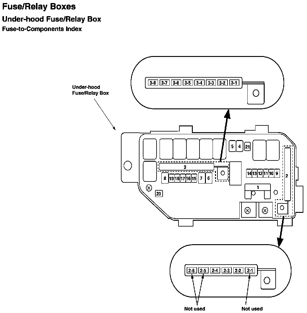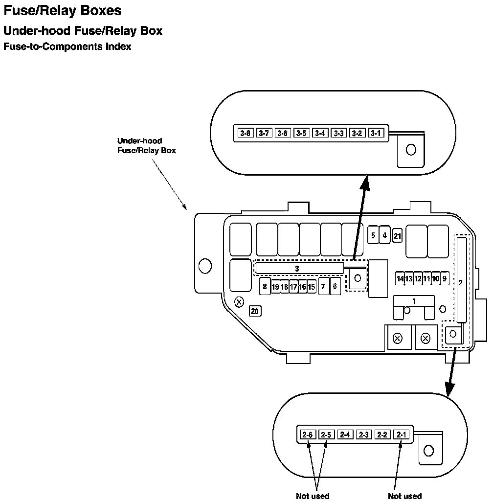 Under-Hood Fuse/Relay Box - Fuse-to-Components Index