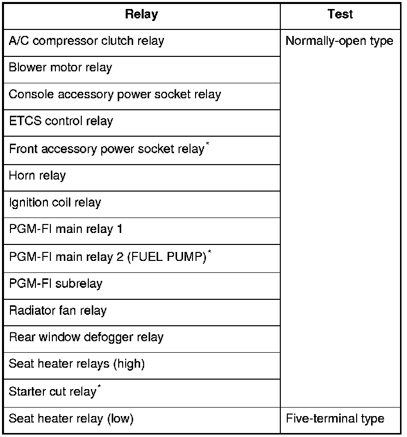 Use this chart to identify the type of relay, then do the test listed for it.