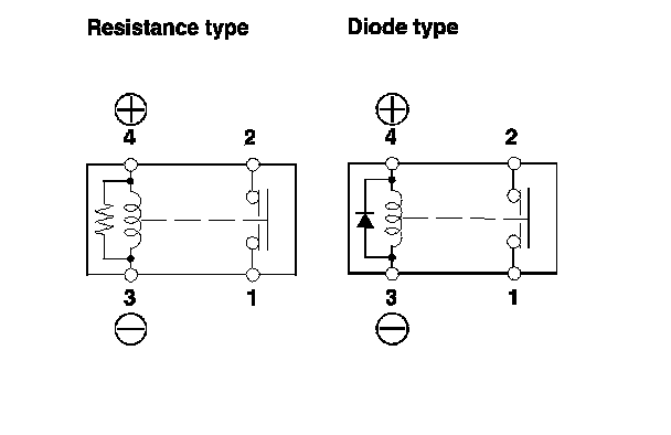 - There should be continuity between the terminals No. 1 and No. 2 when battery power is connected to the terminal No. 4, and body ground is connected to the terminal No. 3.