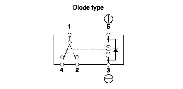 - There should be continuity between the terminals No. 1 and No. 2 when battery power is connected to the terminal No. 5, and body ground is connected to the terminal No. 3.