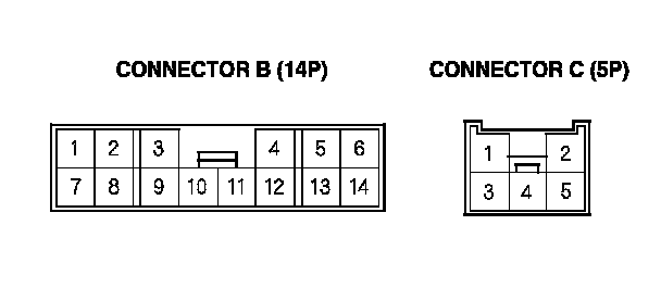 1. Disconnect the negative battery cable, then disconnect the under-hood fuse/relay box connectors B (14P) and C (5P).