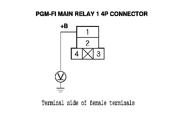 63. Measure the voltage between PGM-FI main relay 1 4P connector terminal No. 4 and body ground.