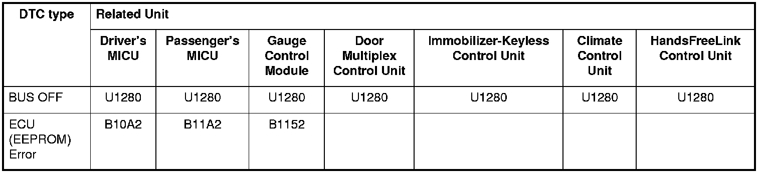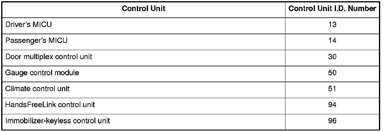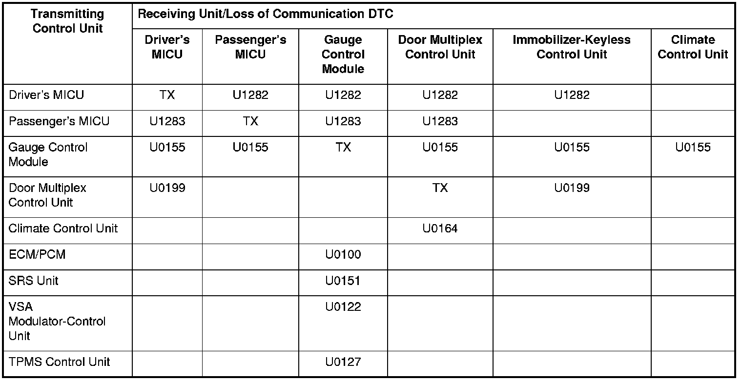 When an ECU is unable to communicate with the other ECUs on the CAN circuit, the other control units will set loss of communication DTCs. Use this chart to find the control unit that is not communicating.