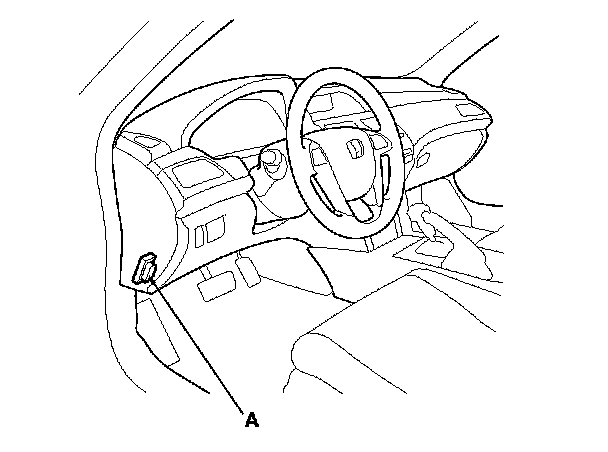 2. If the MIL stays on, connect the HDS to the data link connector (DLC) (A) located under the driver's side of the dashboard.
