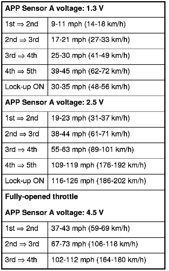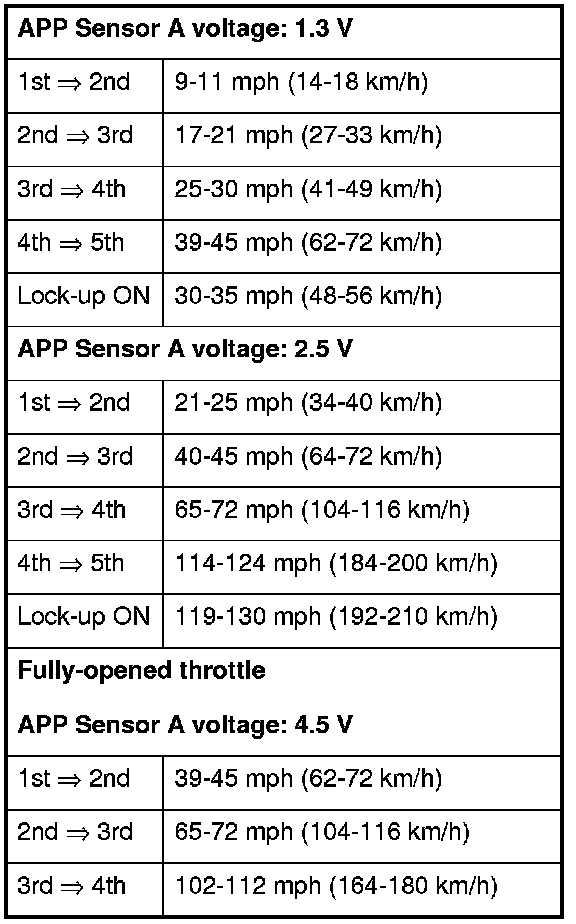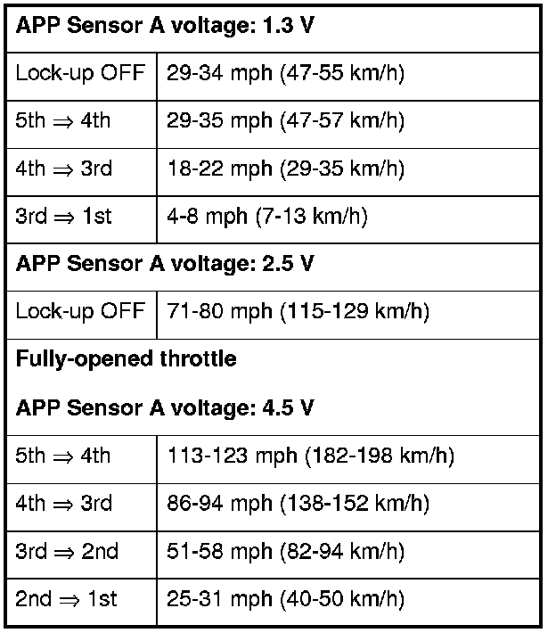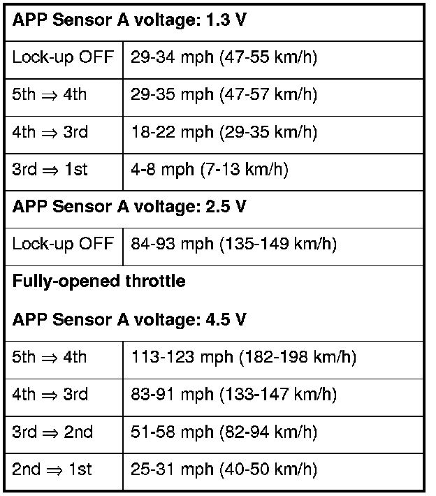 8. Monitor the HDS and accelerate quickly until the APP Sensor A reads 1.3 V. Maintain a steady throttle until the transmission shifts to 5th gear, then slow the vehicle and come to a stop.