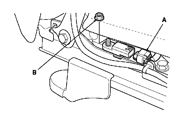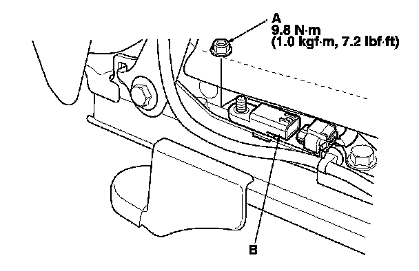 1. Install the driver's seat position sensor with a nut (A), then connect the driver's seat wire harness 2P connector to the driver's seat position sensor (B).
