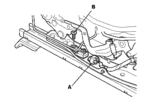 1. Install the driver's seat position sensor with a new TORX bolt (A), then connect the seat position sensor harness 2P connector to the driver's seat position sensor (B).