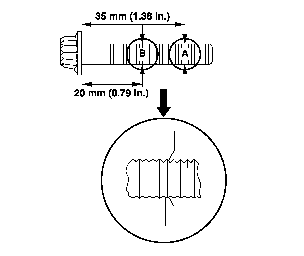 Measure the diameter of each connecting rod bolt at point A and point B.