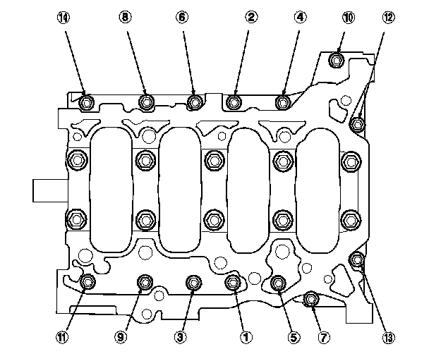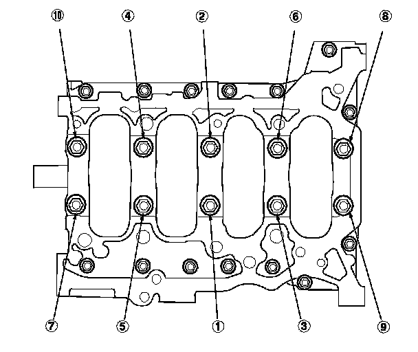 Tighten the bearing cap bolts in sequence, to 29 N-m (3.0 kgf-m, 22 lbf-ft).