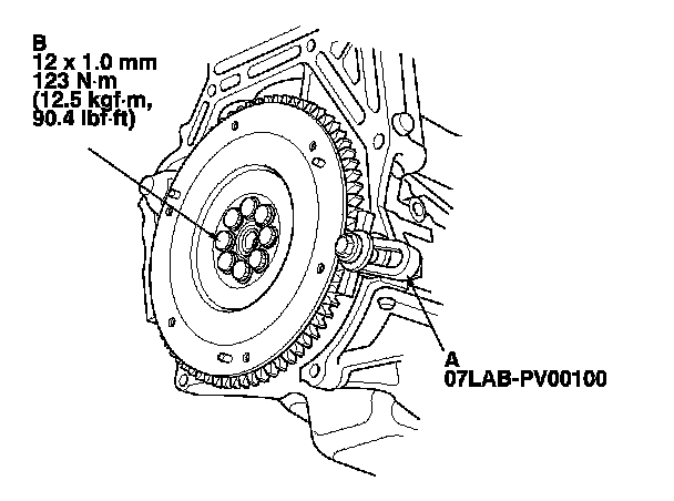 Torque the flywheel mounting bolts in a crisscross pattern in several steps.
