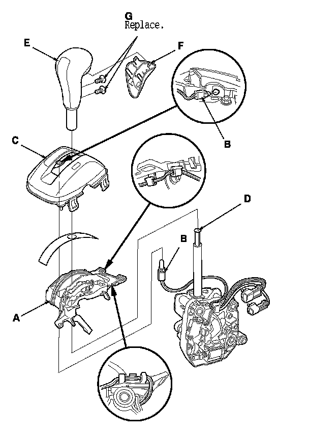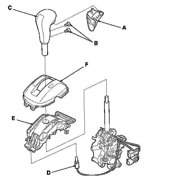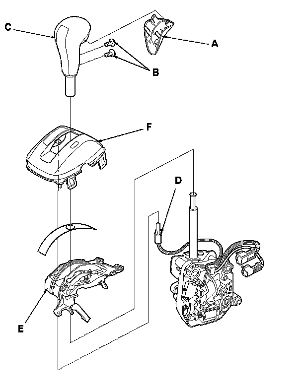 2. Remove the shift lever assembly. Shift Lever Removal (A/T)