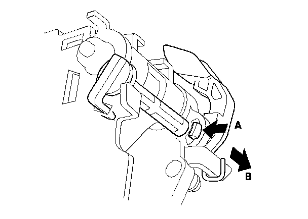 7. Release the lock (A) of the shift lock release, and remove the shift lock release and the release spring (B).