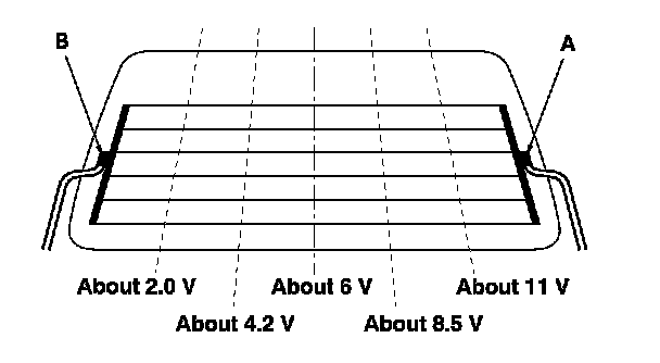 - If the voltage is as specified, the defogger wire up to that point is OK.