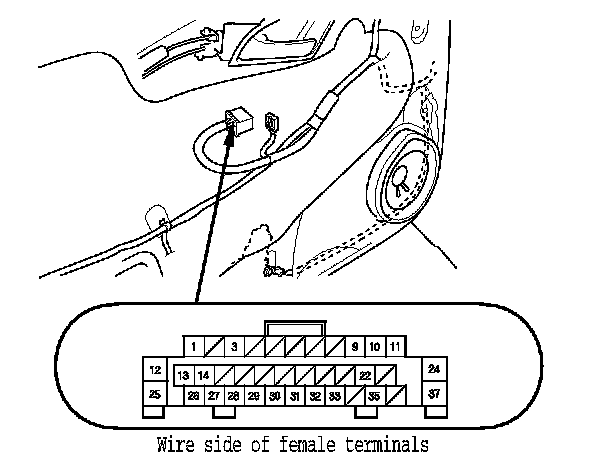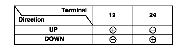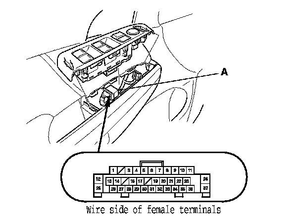 2. Test the motor in each direction by connecting battery power and ground to the power window master switch 37P connector (A) according to the table.