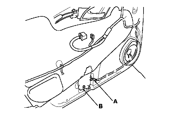 5. Disconnect the 6P connector (A) from the driver's power window motor (B).