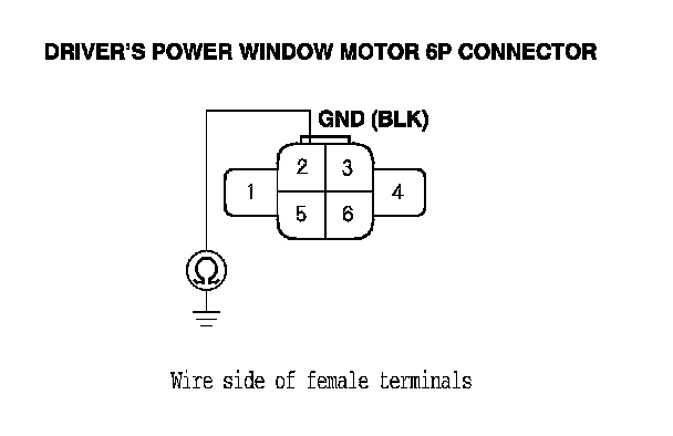 8. Check for continuity between the driver's power window motor 6P connector terminal No. 2 and body ground. There should be continuity.