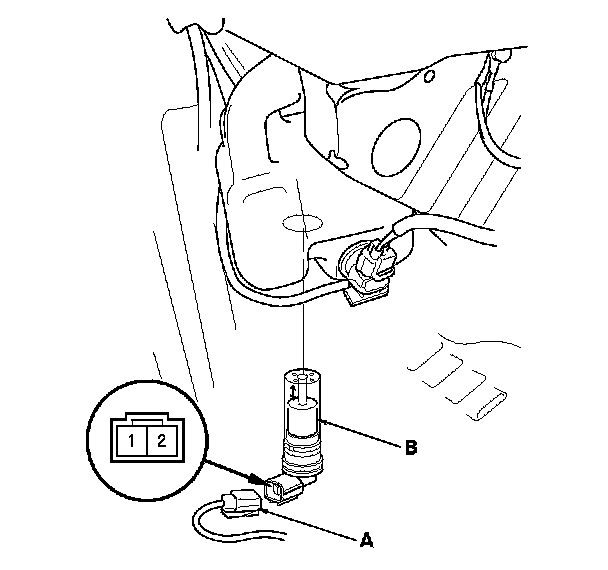 2. Disconnect the 2P connector (A) from the washer fluid level switch (B).