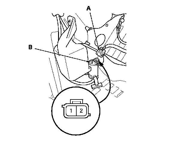 2. Disconnect the 2P connector (A) from the washer motor (B).