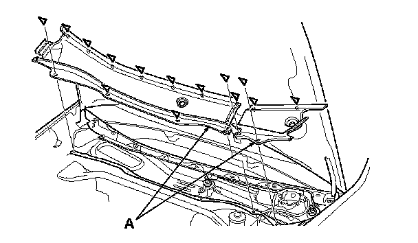 2. Close the hood, then spread protective cloths (A) on the hood to avoid scratching the hood edge.