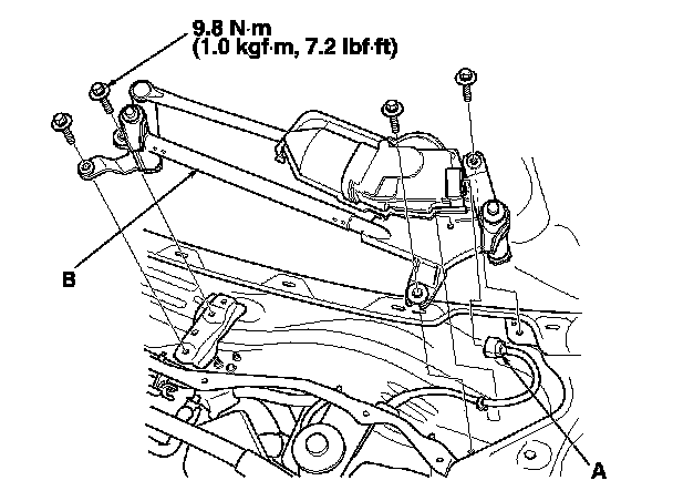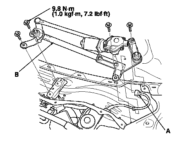 2. Install the wiper motor to the wiper linkage assembly in the reverse order of removal.