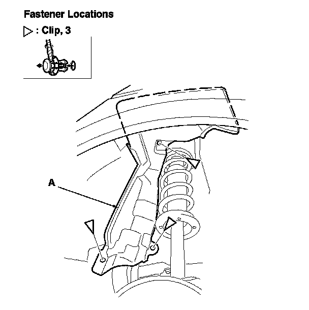 2. Remove the clips, then remove the fuel pipe protector (A).