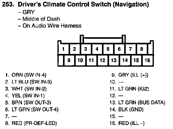View 253 Driver's Climate Control Switch Connector View (Navigation)
