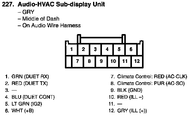Audio-HVAC Sub-display Unit Connector View (Climate Control)